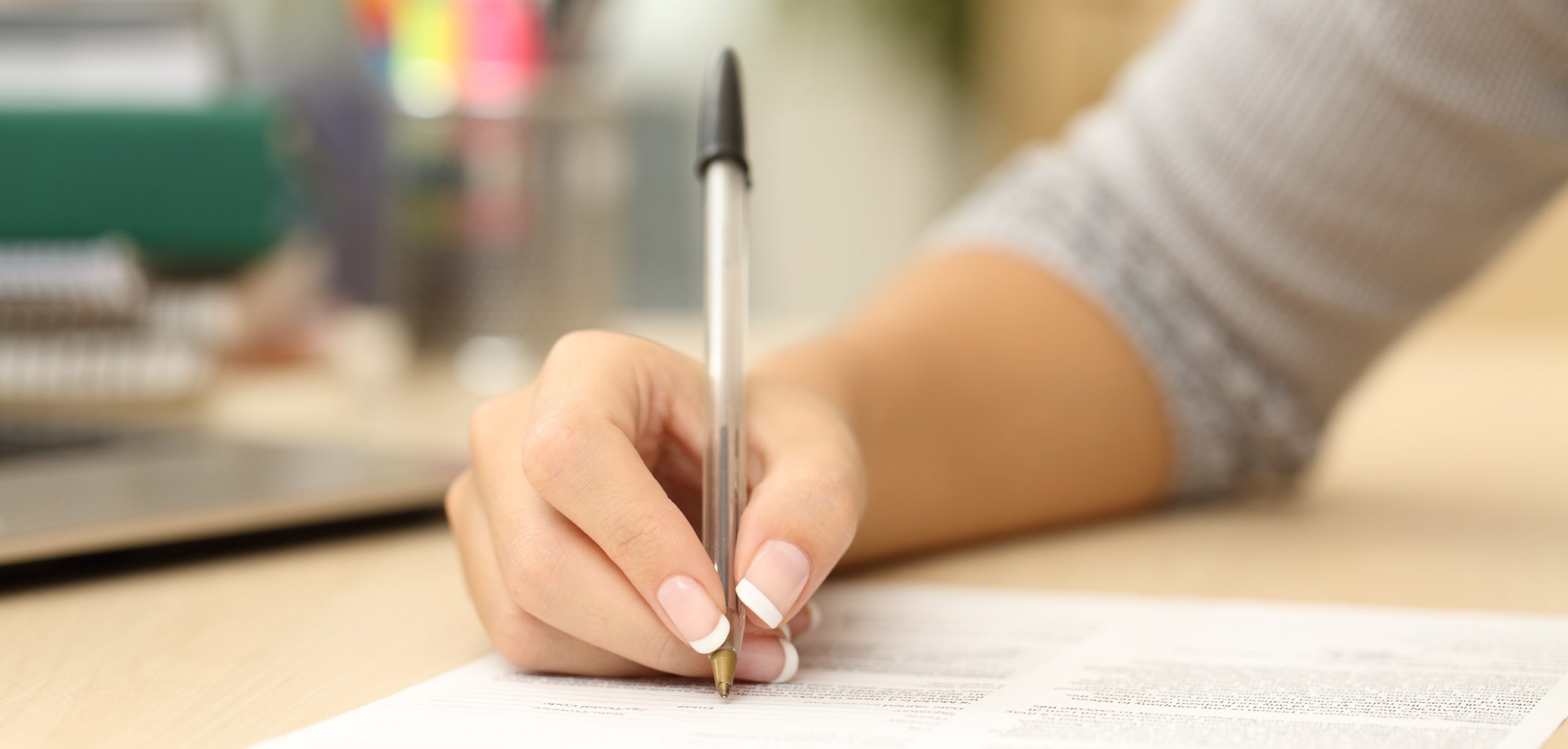 Woman hand writing or signing in a document